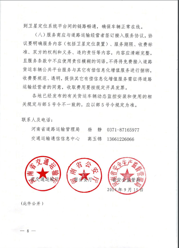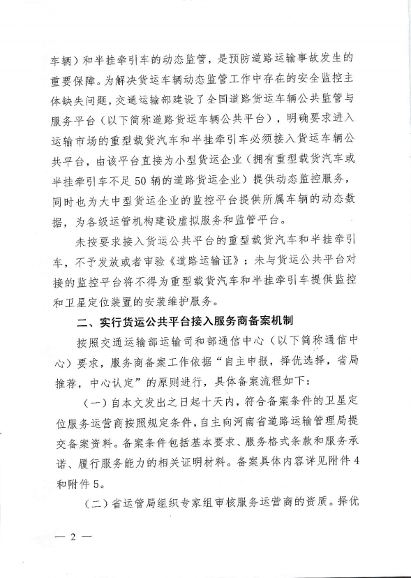 河南省交通运输厅关于做好重型载货汽车和半挂车接入全国货运车辆公共监管与服务平台工作通知豫交文【2014】630号