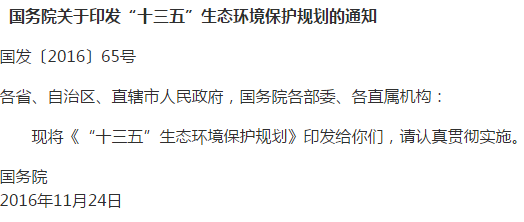 国务院关于印发‘十三五‘生态环境保护规划的通知国发}’【2016】65号