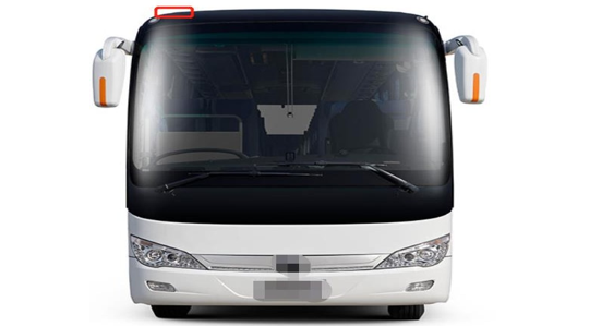 B.请使用3M双面胶将GPS天线粘贴到前挡风玻璃的右下角。天线顶部向外,有丝印文字的一面向内,如下图: