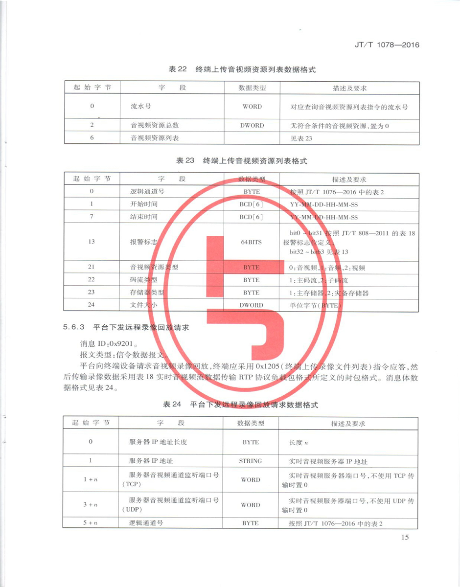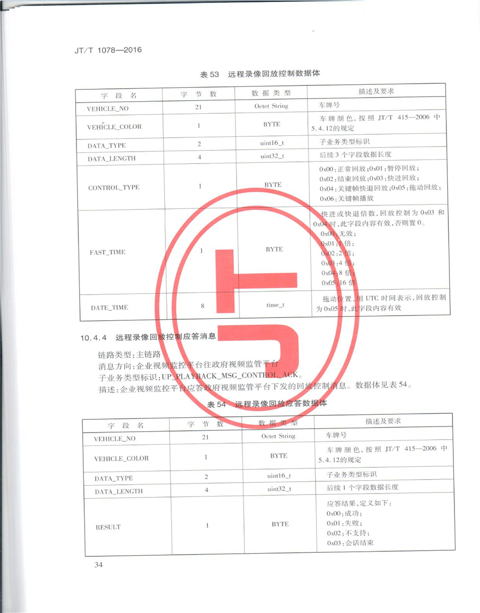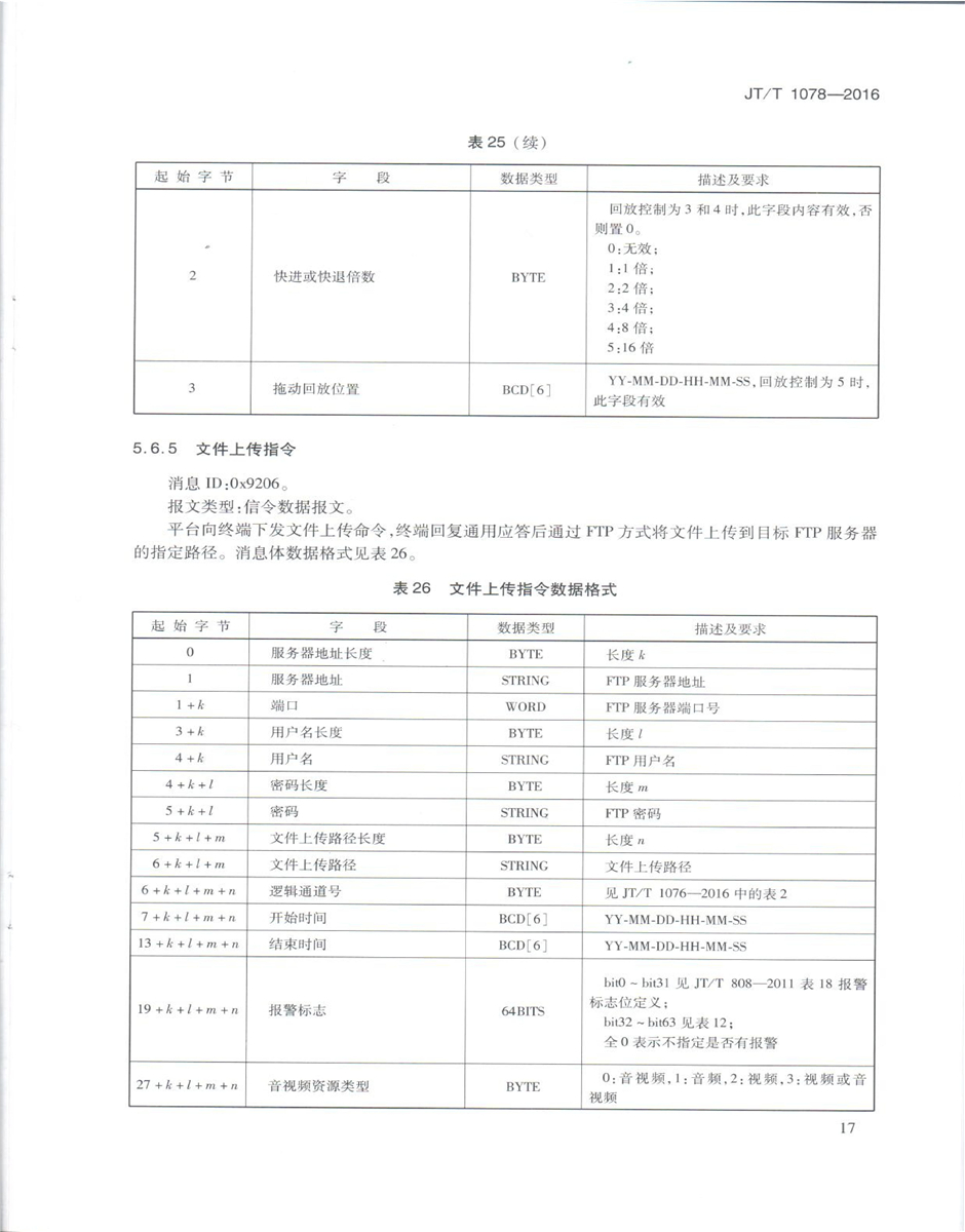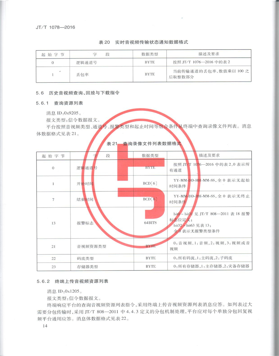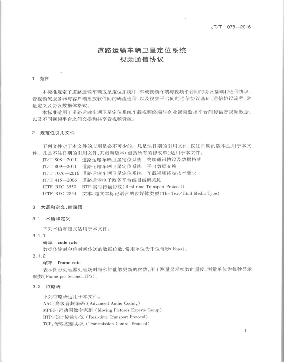 JT/T 1078-2016道路运输车辆卫星定位系统 视频通信协议