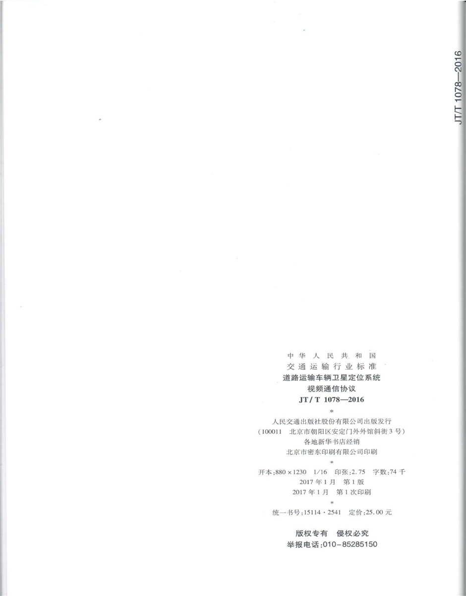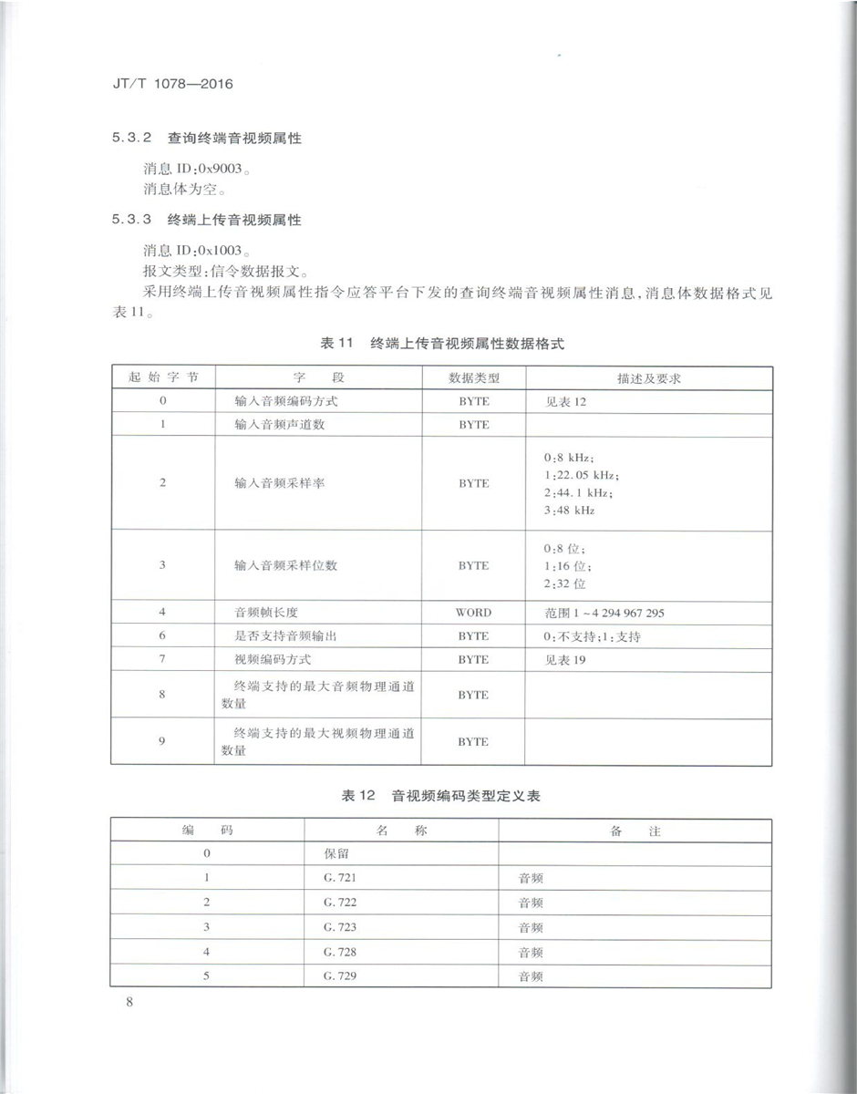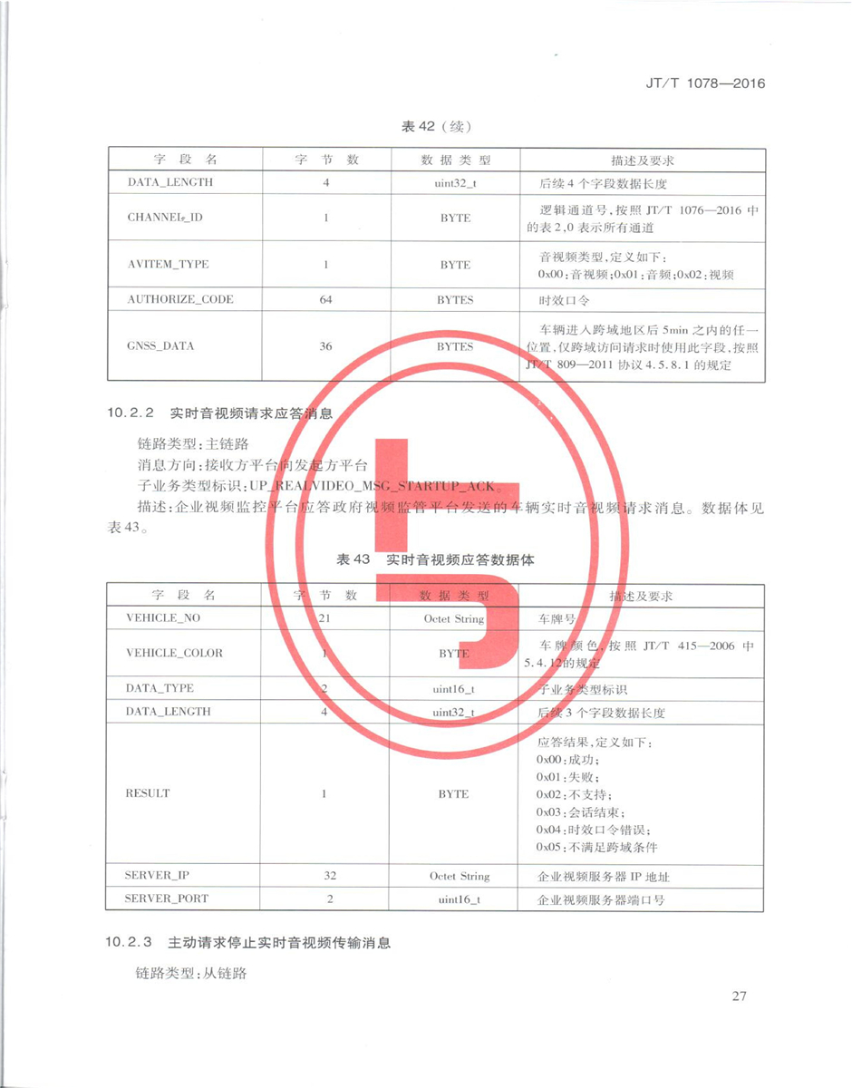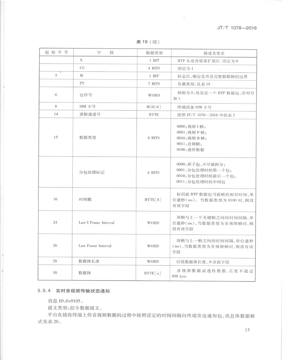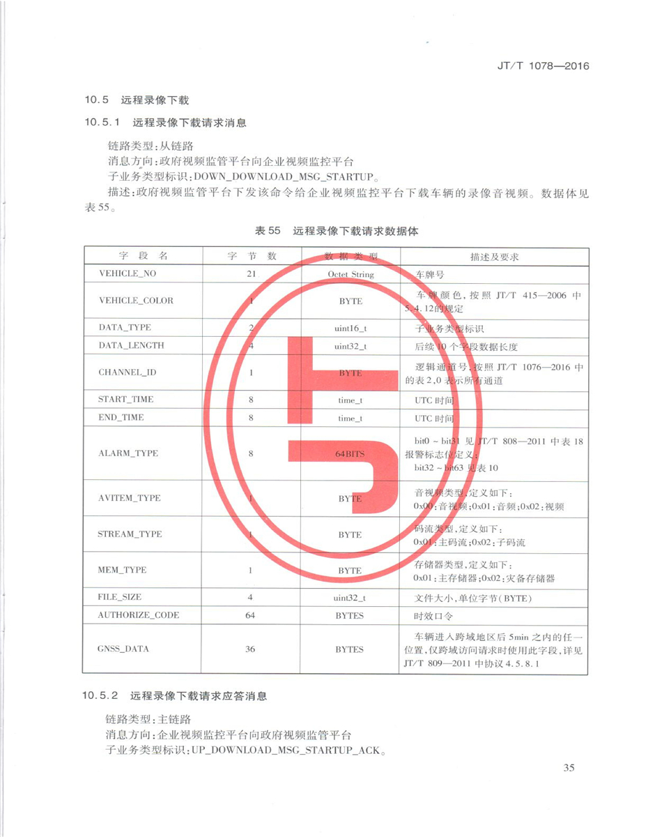JT/T 1078-2016道路运输车辆卫星定位系统 视频通信协议