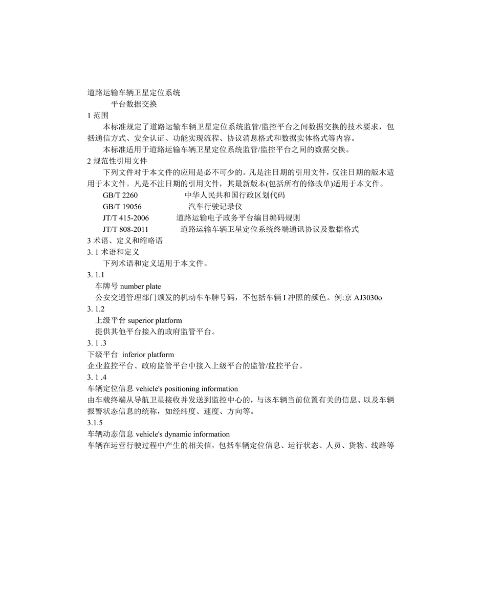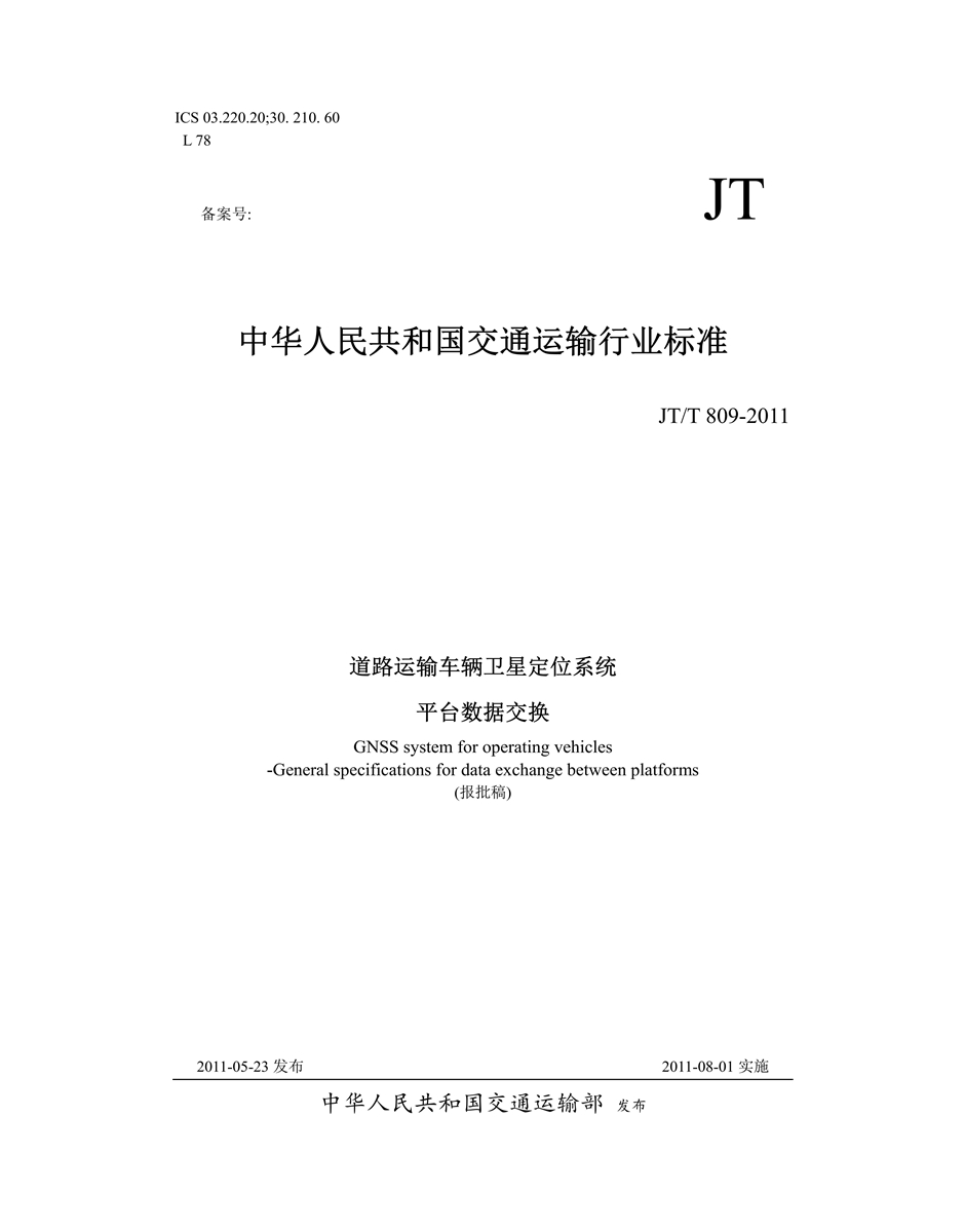 JT/T809-2011道路运输车辆卫星定位系统(平台数据交换)