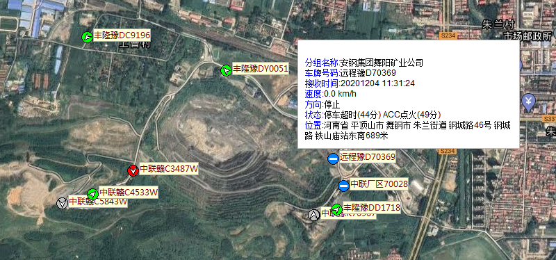 德宝科技为安钢集团舞阳矿业工程车转运车安装GPS定位系统,在系统后台可以清楚地看到每辆车的工作状态,停止,行驶,超速。出区域,一目了然。并且有详细的报表